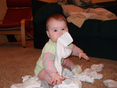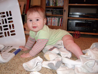 Claire enjoys helping out with the laundry. It can take hours (or sometimes days, but who's counting anyway!) to get everything folded and put away because she loves pulling everything out of the basket and dragging it across the room or destroying the freshly folded piles within reach.