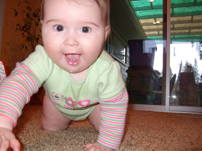 Once Claire started crawling and pulling up on things, nothing was safe anymore, especially shiny silver cameras taunting her. Here she is in full attack mode...