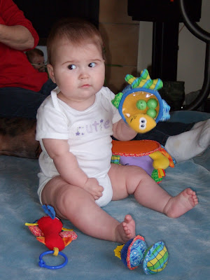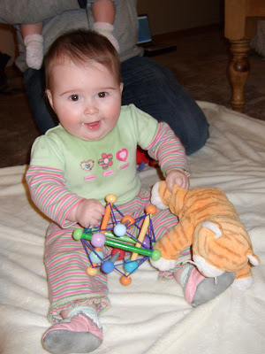 Just chillin' in her car that the Barson's let us borrow. Claire loves all of the toys and music.