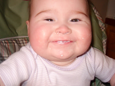 Claire has always had a great appetite. We consider ourselves very lucky. Beginning different solid foods is always fun. Here is fun with cottage cheese.