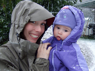 In late April we had a freak snow-storm, right after a gorgeous weekend out on Whidbey Island (see Whidbey Island post). We didn't spend much time out in the snow this winter so Claire didn't quite know what to think. She refused to look at the camera and only wanted to lick the snowflakes from her snowsuit.