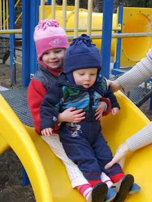 We caught Sophia and Everett in a precious brother-sister moment on the slide...so cute!