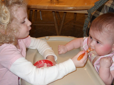 Back at the house Sophia enjoyed feeding Baby Claire her yogurt. You can tell she has had a lot of big-sister practice!